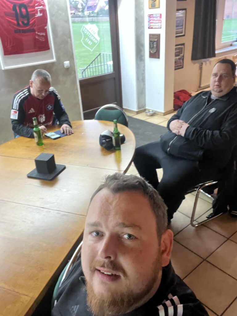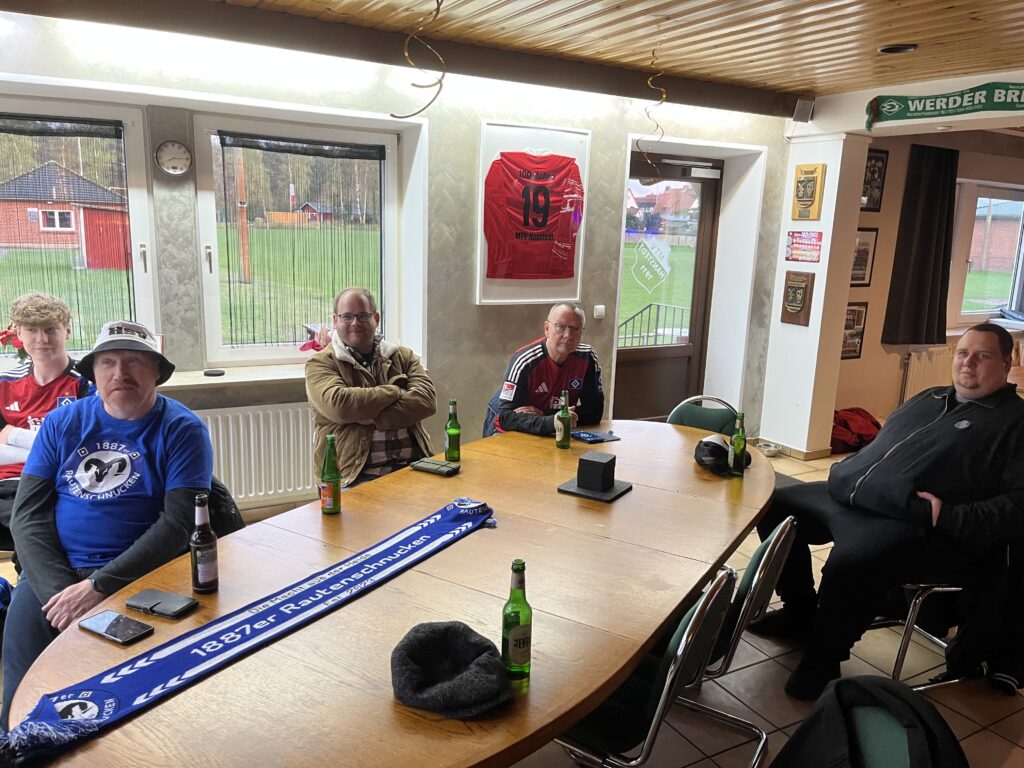 Andre K, Andre S, Ben, Luan, Collin, Dennis und Karin erwartungsfroh auf Schalke, ein Teil der Rautenschnucken zu Hause in Hanstedt. Nach dem enttäuschenden 2:4 gegen Braunschweig musste es gegen saisionübergreifende schwache Schalker endlich zu einem Dreier reichen. Nach 60 Sekunden ist Schalke bereits berechtigterweise in Unterzahl, so etwas noch nie gesehen oder erlebt.